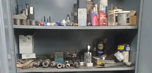 Power feeds on X axis and Knee 10 inch column riser Peterson TCM-25 dual axis leveling table for Cylinder Head Work Piston Vice Collet set Vice Lots of misc tooling 220 volt 3 phase