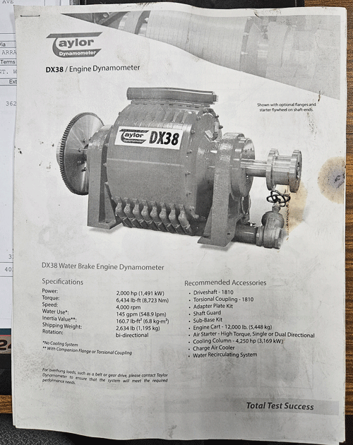 Taylor DX38 Diesel Dyno